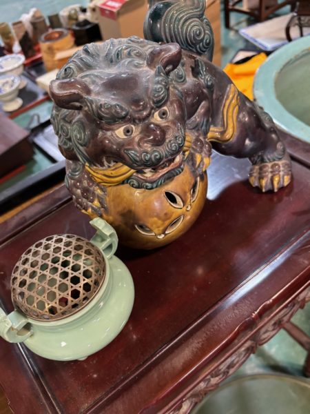 横浜市南区のご実家整理で九谷焼の獅子置物や香炉、花梨の花台など骨董品を出張買取しました