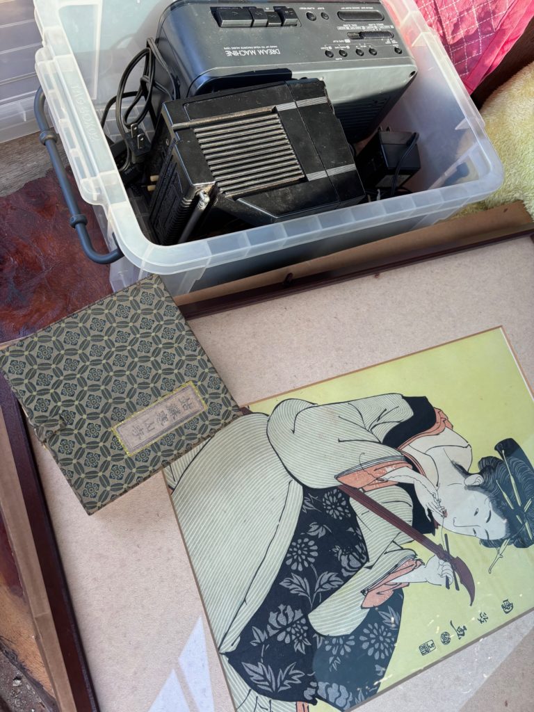 古い電化製品やカセットプレーヤー、さらに木版の浮世絵や古い贈答品など、さまざまなお品をまとめて拝見いたしました。