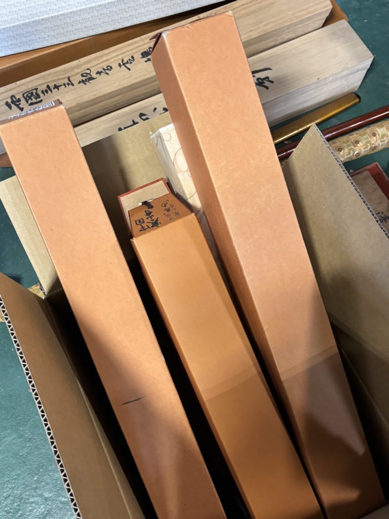 母屋の納戸や押し入れを整理されているとのことで、長年保管されていた箱物が多く、そのままの状態で拝見させていただきました。