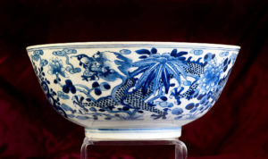 18th Century Chinese blue and white dragon bowl Qing dynasty.